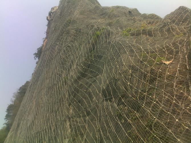 我們先對提出這個疑問的人給予充分的肯定,提出問題說明對工程負責,但是這種顧慮是完全可以化解的。主動邊坡防護網(wǎng)每片鋼絲繩網(wǎng)的尺寸一般是4米*4米,只要把支撐繩固定好后,通過縫合繩將每片鋼絲繩網(wǎng)縫合起來。即使再陡峭的邊坡也可以完美的施工完成。如果遇到那種地形非常復雜的我們可以采用縮小每片鋼絲繩網(wǎng)的大小,把每片縮減到2米*2米甚至更小,讓鋼絲繩網(wǎng)更加微粒化,安裝更加靈活。